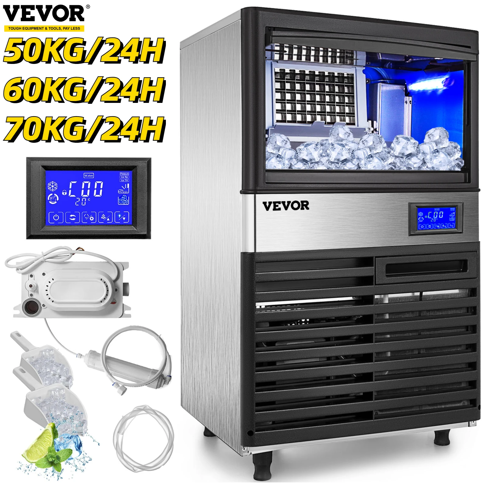 Vevor Commercial Cube Ice Maker With Water Drain Pump 50 60 70 Kg 24h Freestanding Lcd Touch Screen Liquid Freezer Ice Machine Ice Machine Aliexpress